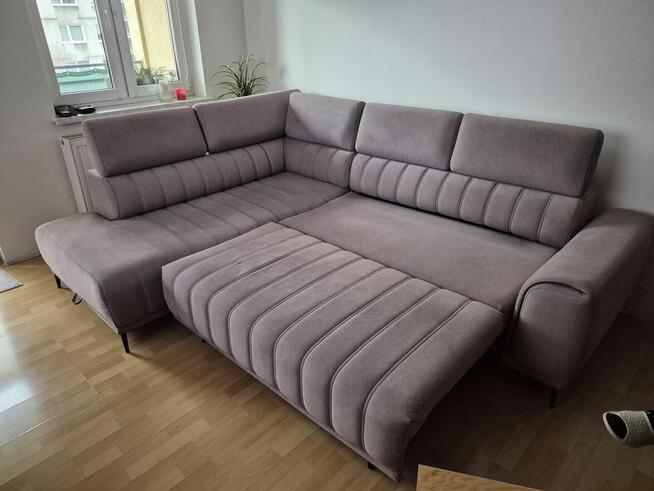NAROŻNIK NOWOCZESNY SKÓRZANY Z SPANIEM- Nowy WYMIARY: 2,35 X 2,75 RUCHOME ZAGŁÓWKI RUCHOMY ...